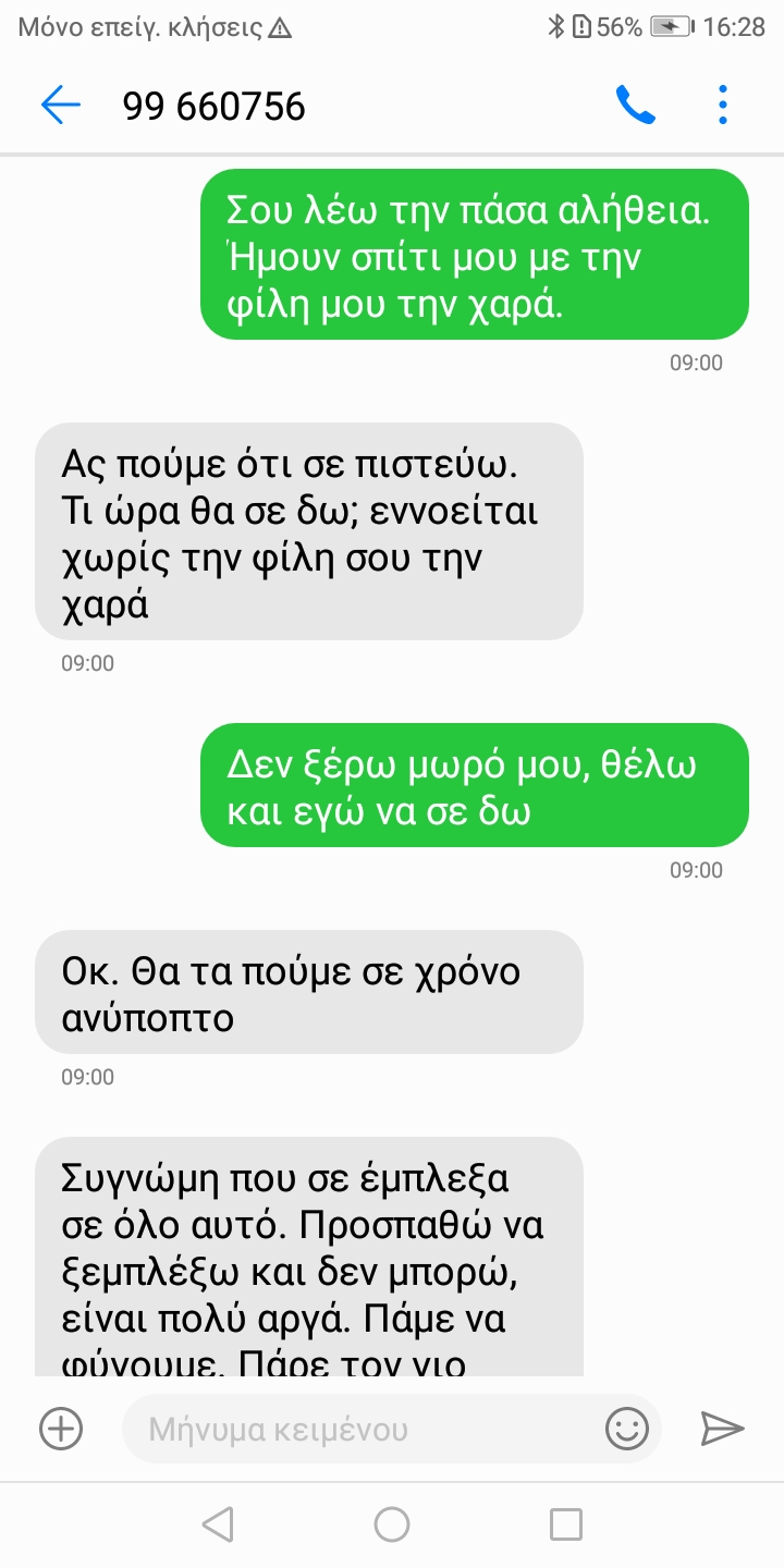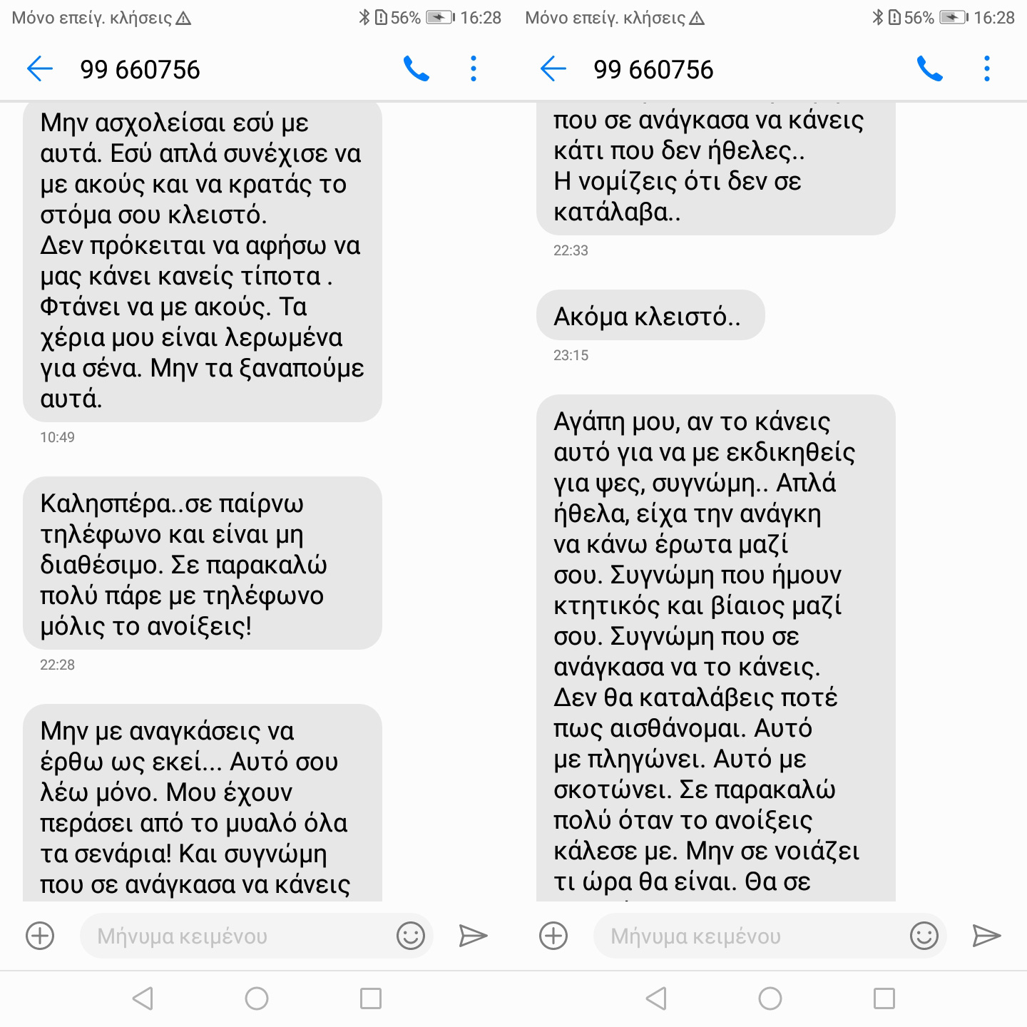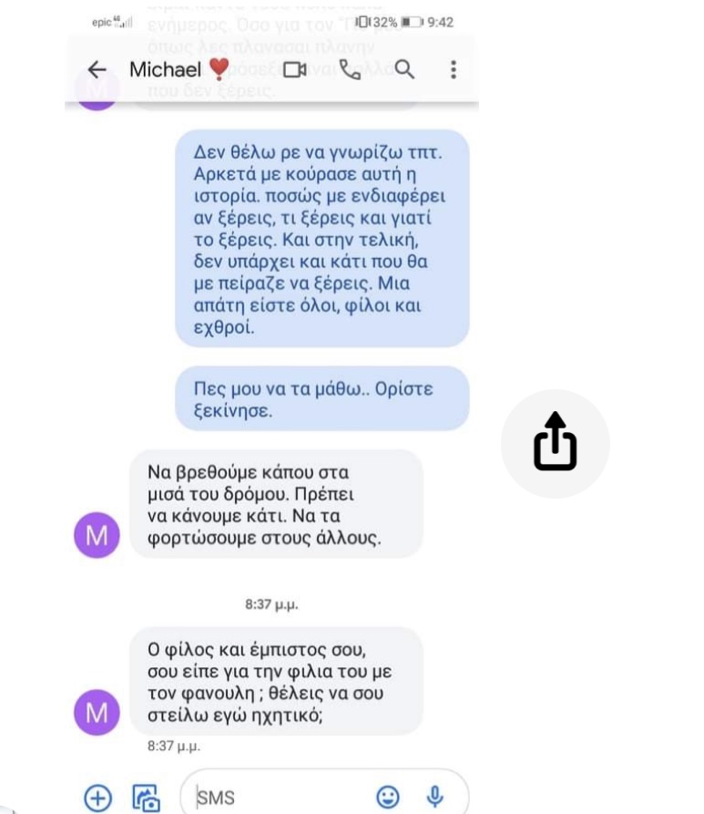 Σ: «Ότι έγινε έγινε γιατί δεν κανονίζουμε να τα πούμε από κοντά που είναι και πιο ασφαλές;»