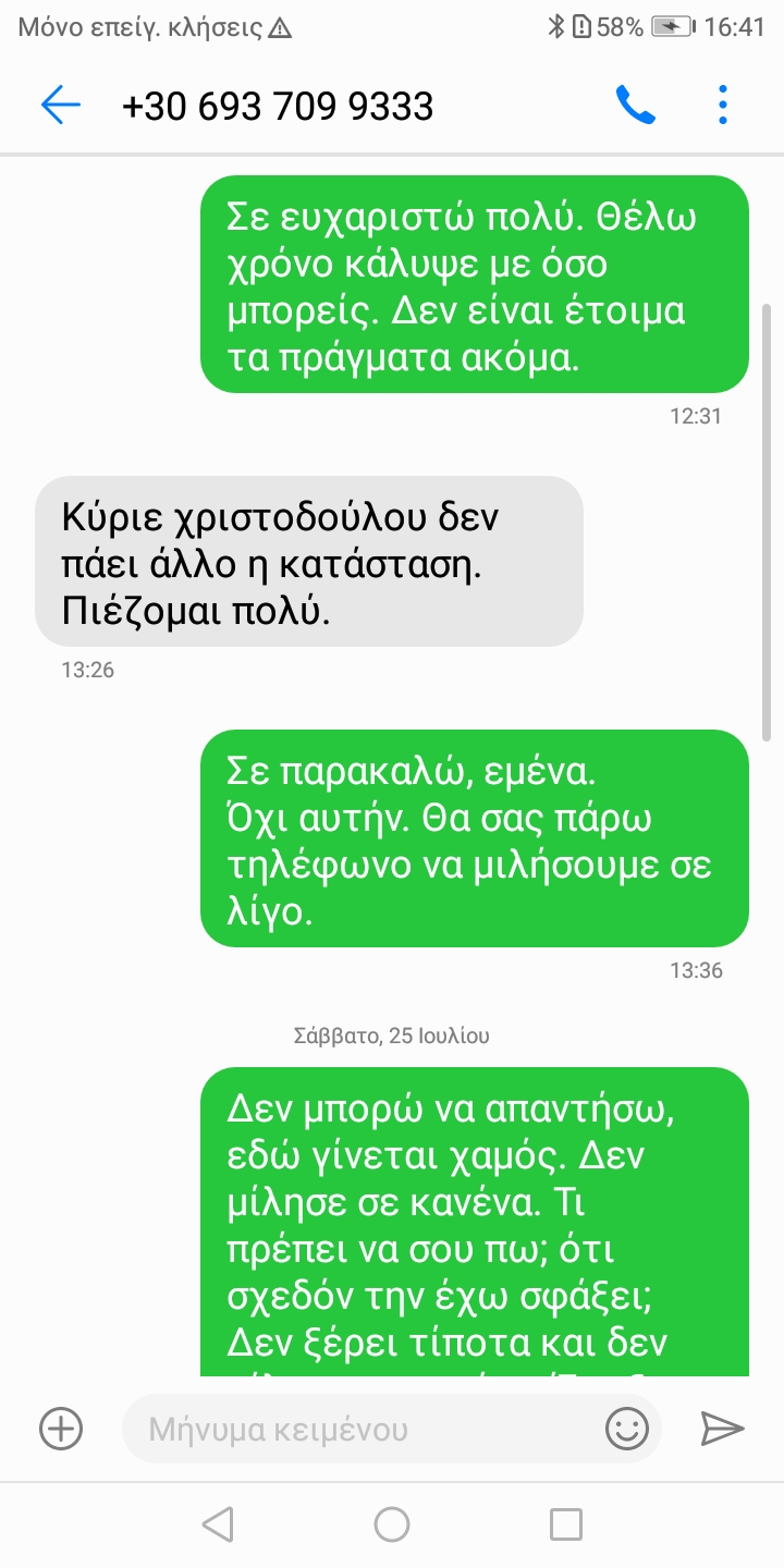 Σ: «Μίλησε μου, μην με αφήνεις με την αγωνία. Σε παρακαλώ. Είδες σβήνω όσα λέμε. Θέλω να ξέρω με αφορά.»
