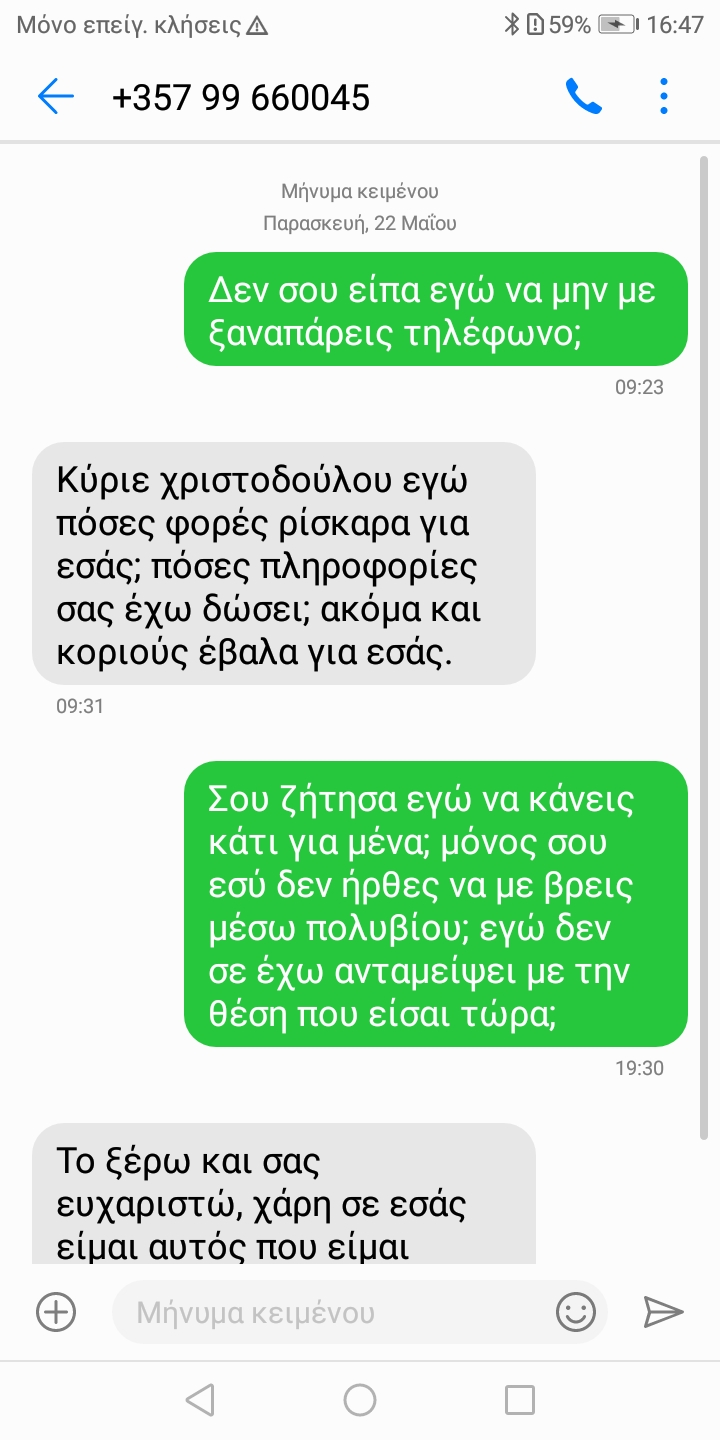 ΜΧ: «Πάρε με τηλέφωνο στο 99660756.»