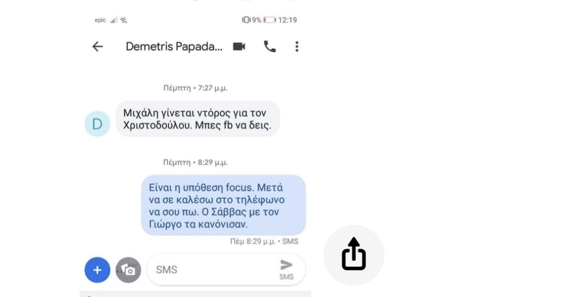 «Εσείς (δηλαδή ο Χριστοδούλου): Είναι η υπόθεση focus. Μετά να σε καλέσω στο τηλέφωνο να σου πω. Ο Σαββ[ας με τον Γιώργο τα κανόνισαν]»