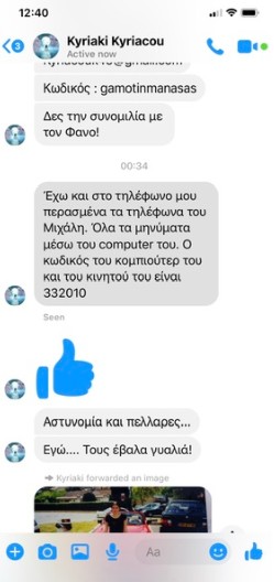 «Έχω και στο τηλέφωνό μου περασμένα τα τηλέφωνα του Μιχάλη. Όλα τα μηνύματα μέσω του Computer του. Ο κωδικός του κομπιούτερ του και του κινητού του είναι 332010»