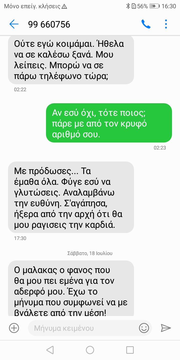 ΜΧ: «Πάρε με τηλέφωνο στο 99660756.»