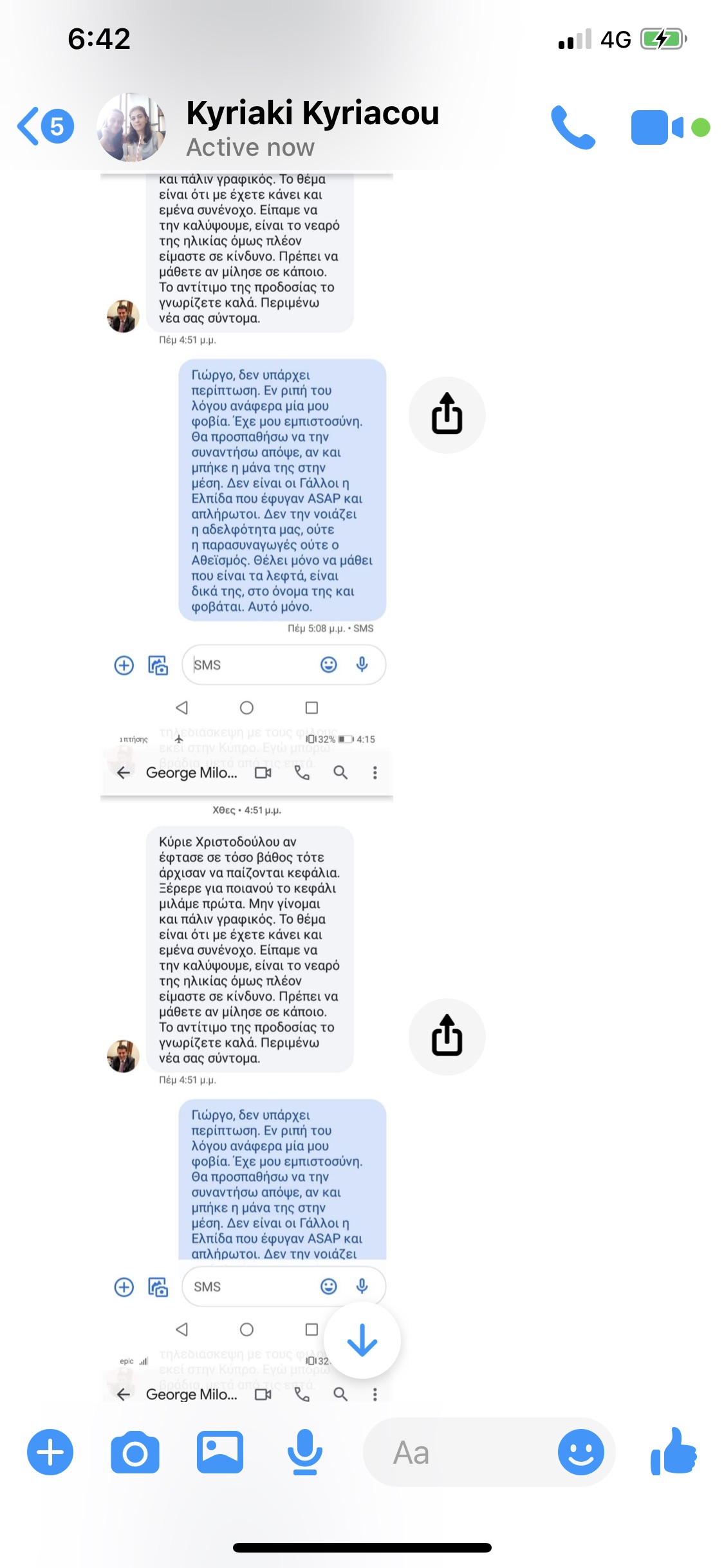Επίσης, αναλύοντας το περιεχόμενο των μηνυμάτων κατέληξα στο ότι η [REDACTED] φαίνεται να είχε πρόσβαση στο κινητό του Χριστοδούλου: