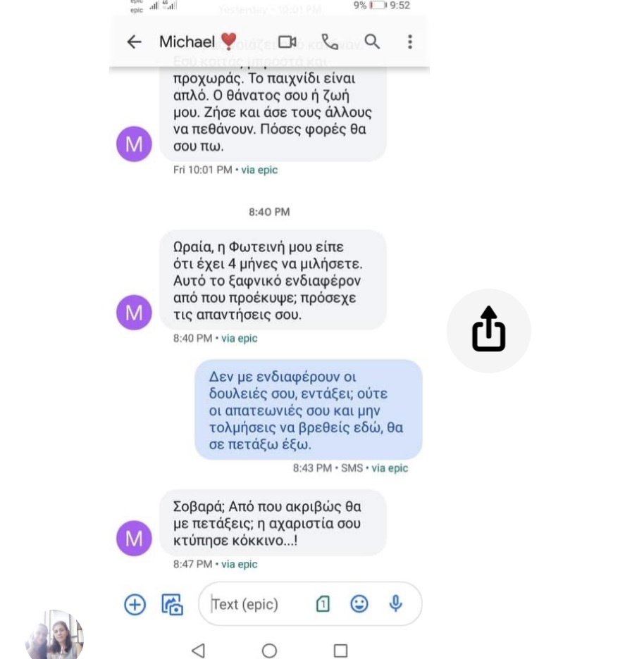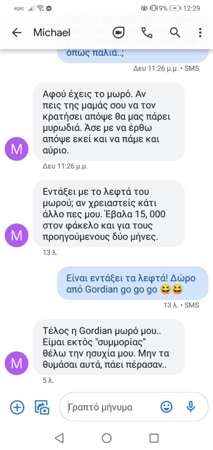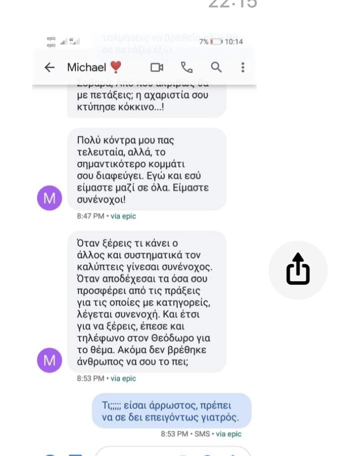 Σ: «Ότι έγινε έγινε γιατί δεν κανονίζουμε να τα πούμε από κοντά που είναι και πιο ασφαλές;»